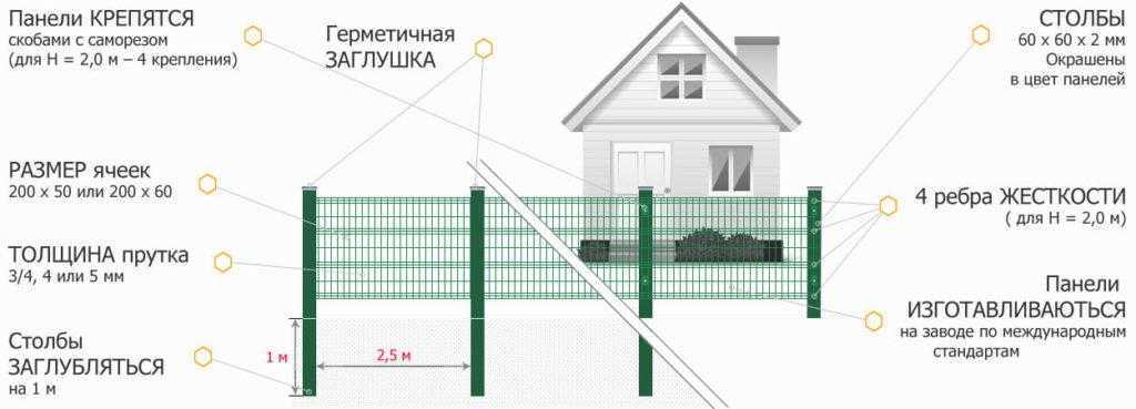 Согласно правилам, высота заборов между участком и улицей не должна превышать 2,5 м, а между соседними участками — 1,5 м. Однако, если полотно не сплошное, и претензий у соседей нет, высоту ограждений можно изменить.