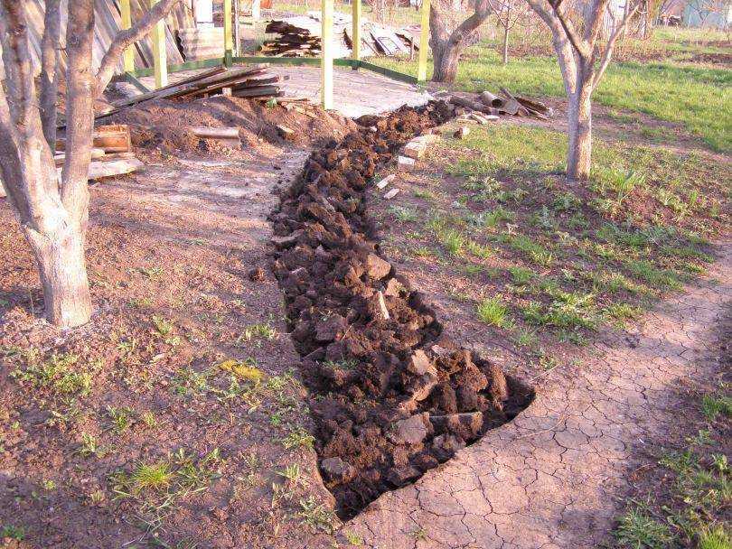 Уберите плодородный слой почвы и подготовьте своеобразный котлован. В дорожном строительстве его называют корытом. Оптимальная глубина от 35 до 50 см