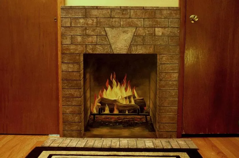 - Символическая имитация. По большей части это просто намек на конструкцию. В этой роли выступает изображение камина на стене. Бывает, что достаточно просто репродукции костра. Воображение человека дорисует остальное и это поспособствует повышению чувства комфорта.