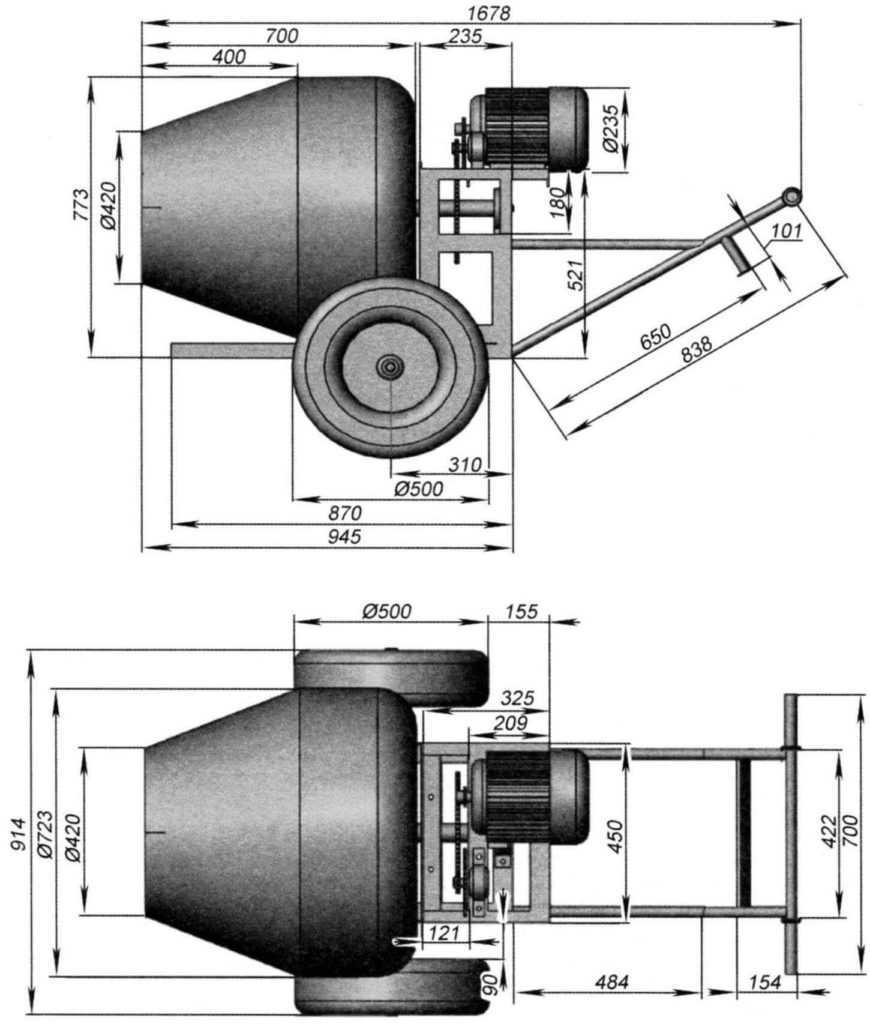Перед изготовлением агрегата рекомендуется составить чертеж самодельной бетономешалки – это поможет рассчитать правильный угол наклона емкости, да и наглядное представление конструкции не помешает.