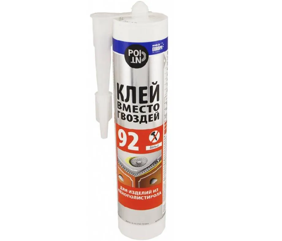 Выбирать составы нужно с полимерными компонентами, которые совместимы с пенополистиролом. Водорастворимая масса не подойдет, так как в пенопласт вода не проникает. То есть такие жидкие гвозди могут не скрепиться с утеплителем.