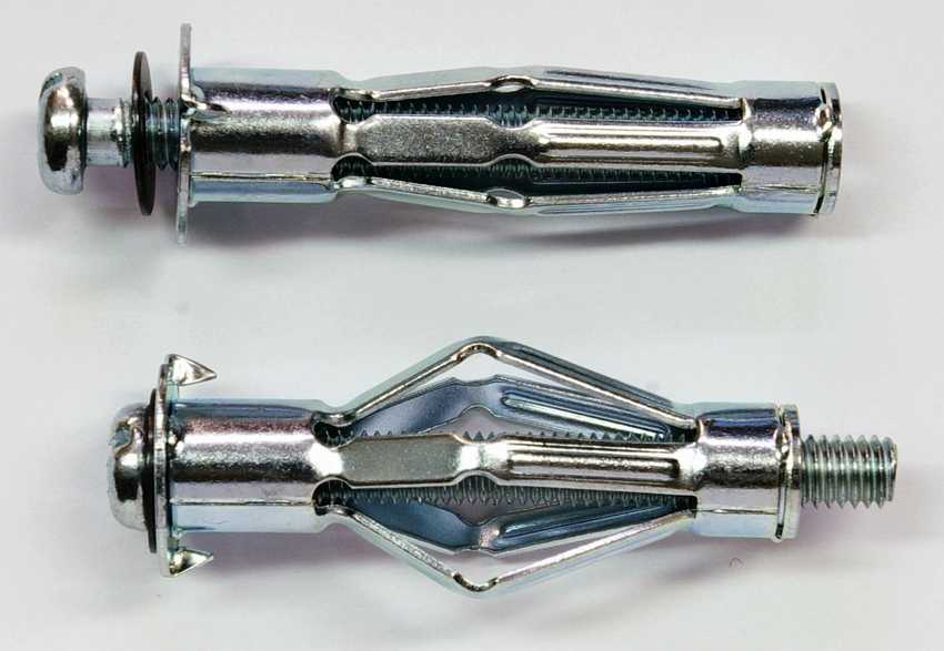 Дюбель-бабочка отличается повышенной износостойкостью, способностью выдерживать высокие нагрузки даже в пустотелых поверхностях. Такие изделия изготавливаются из металла.