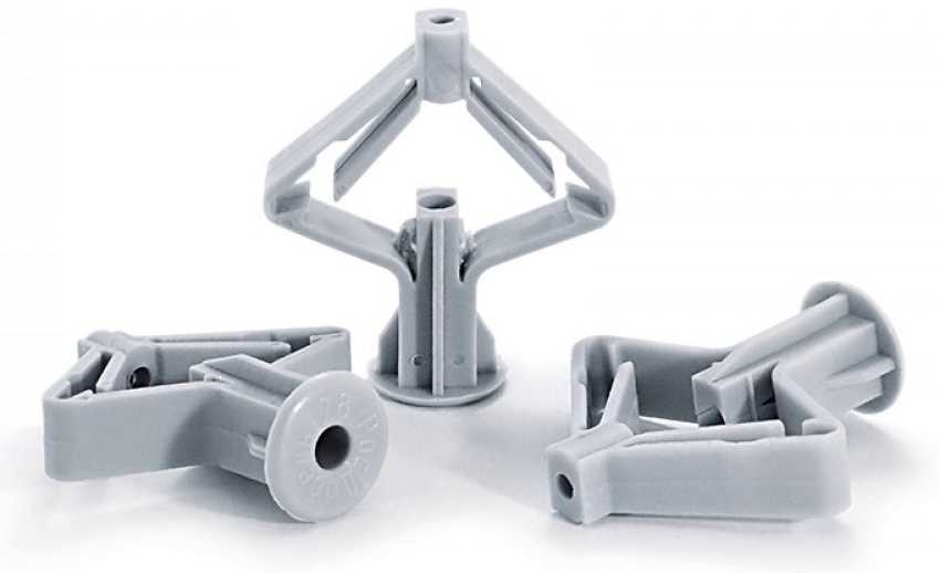 Устойчивость к коррозии — главное преимущество пластиковых изделий. Материалом для них служат полипропилен и полиэтилен. К положительным характеристикам деталей относят их экономичность, экологичность, невосприимчивость к агрессивной среде. Такие дюбели не предназначены для выполнения наружных работ, поскольку с наступлением холодов пластик может лопнуть.
