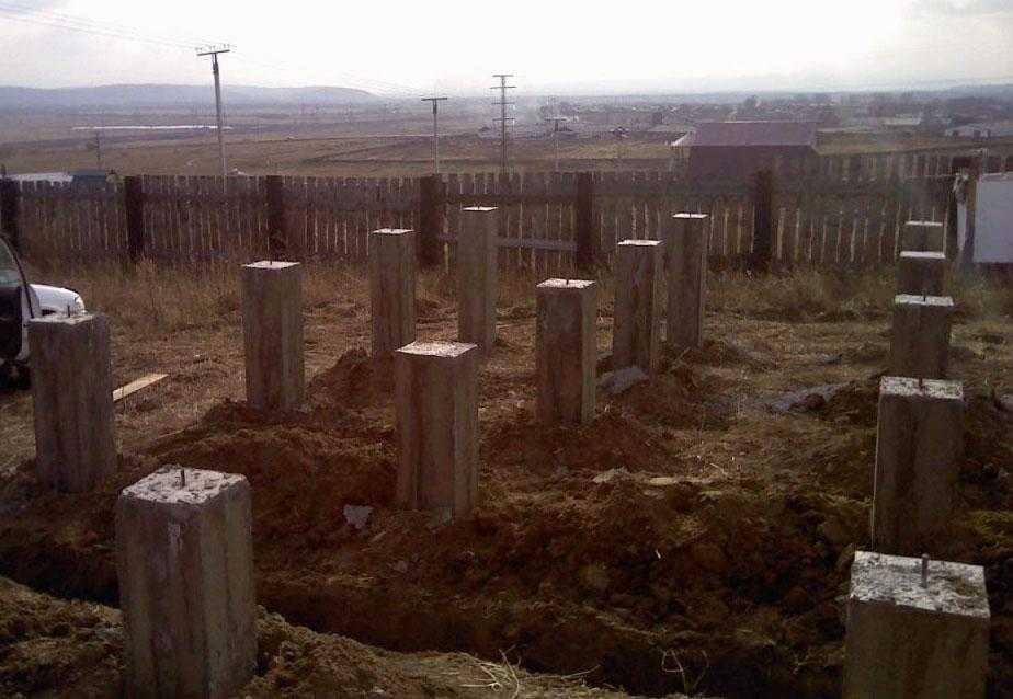 Такие типы фундаментов отличаются высокой скоростью возведения и экономией материалов. Помимо этого сваи и столбы дают возможность вести стройку на сложных грунтах. Сваи и столбы устанавливают точечно по всему периметру будущего дома. Для установки столбов потребуется заранее приготовленные углубления.