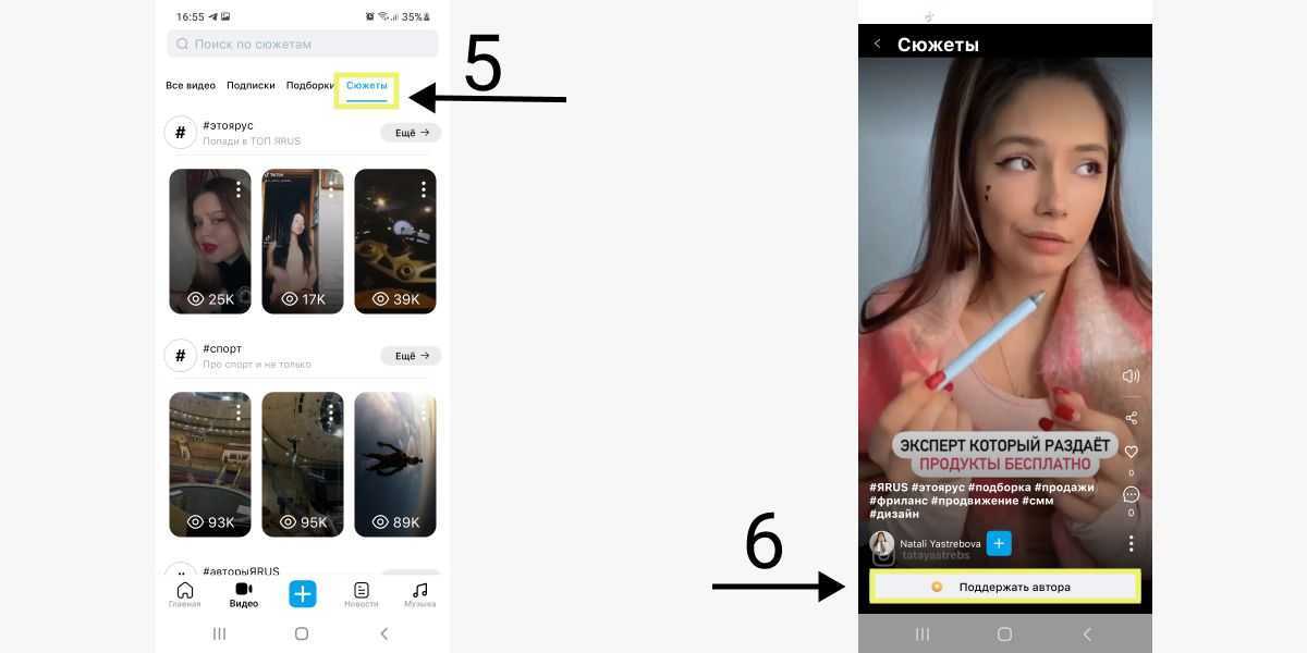 Вкладка «Сюжеты» позволяет смотреть короткие клипы до 30 сек. При просмотре ролика вы можете поддержать автора монетками, списав их со своего баланса. Среди соцсетей России Ярус выделяется возможностью сразу начать монетизировать контент.