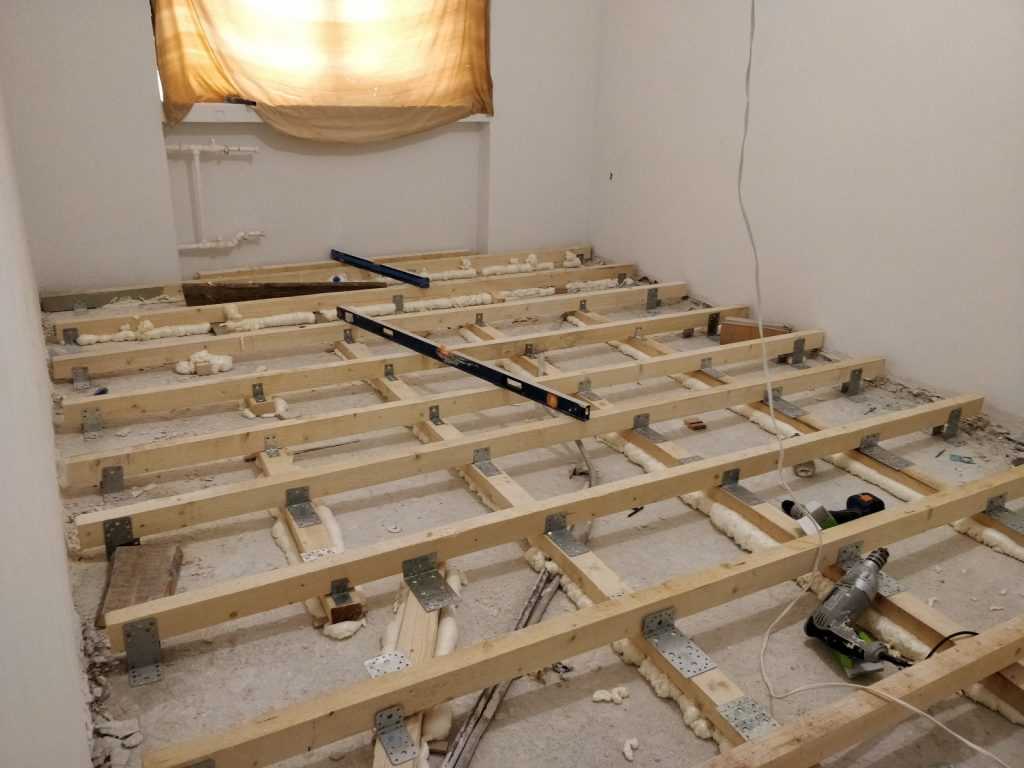 Когда доски старого напольного покрытия будут полностью убраны, откроется основание. Нужно посмотреть, закреплены ли лаги. Часто при строительстве в старых домах этого не делали, а просто засыпали свободное место строительным мусором. Он выполнял роль звукоизоляции.