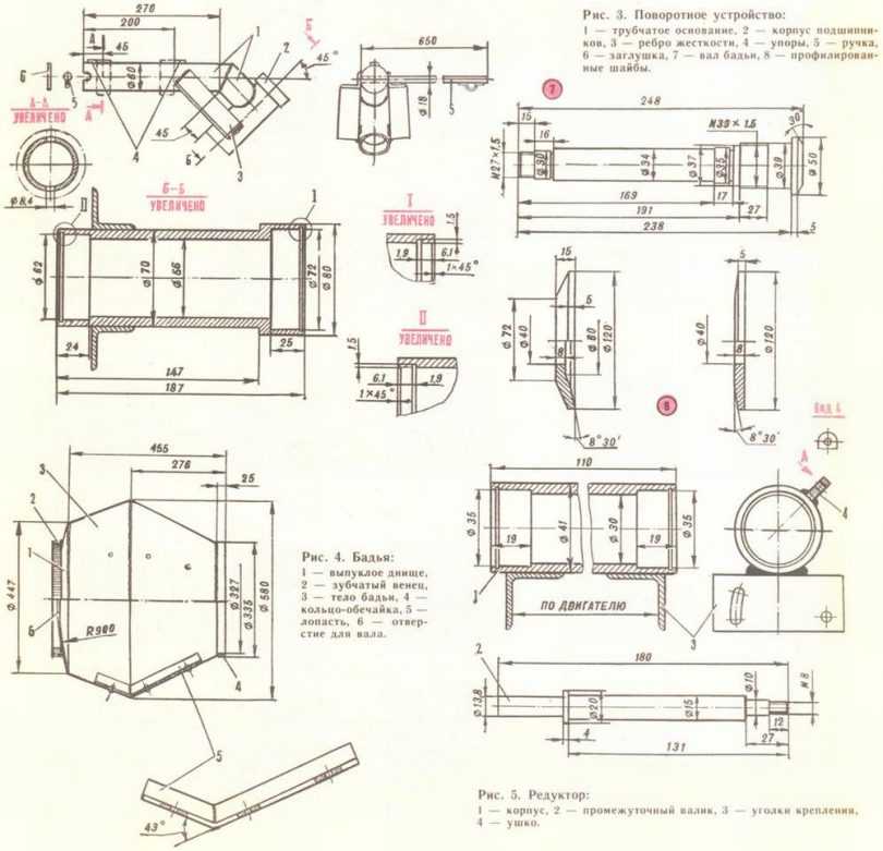 Соблюдая указанную последовательность операций, легко может быть изготовлена бетономешалка своими руками. Чертежи или эскизы можно подкорректировать, предусмотрев возможность использования молочного бидона или другой емкости.