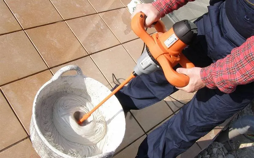 Замешивание клеевой смеси с помощью строительного миксераИсточник www.accbud.ua