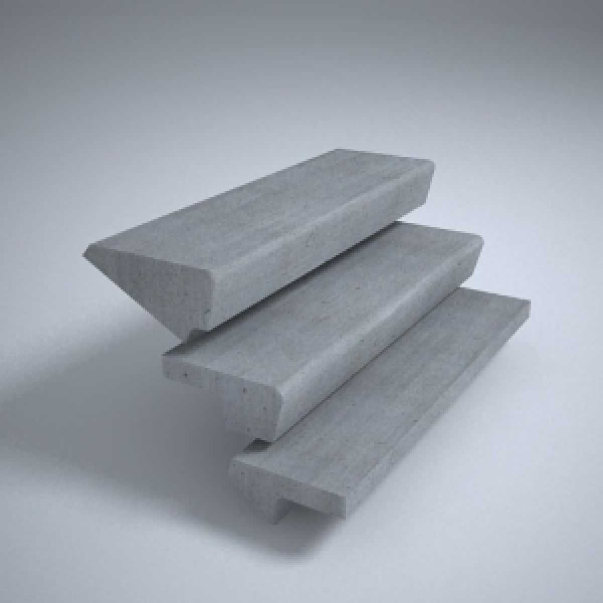 Пескобетон. Проступи и подступенки из данного материала отличаются малой толщиной и разнообразием цветовой палитры. Как правило, в линейку входят доборные элементы и плинтуса для полноценной декоративной отделки лестницы. Прочностные характеристики таких изделий немного уступают железобетону, хотя и имеют внутри армирование.