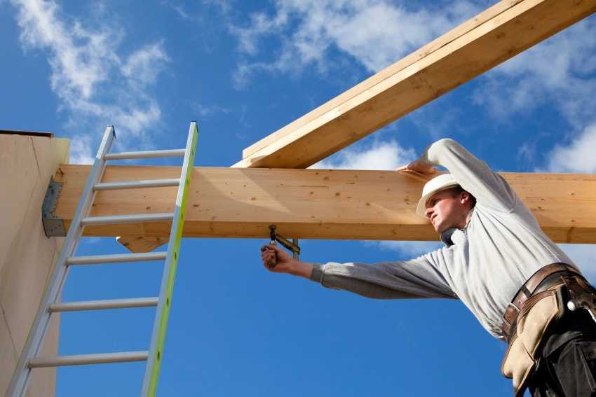При укладке балок важно соблюсти горизонтальный уровень. Монтаж стропильной системы начинается с вертикальных стропил с контролем по уровню