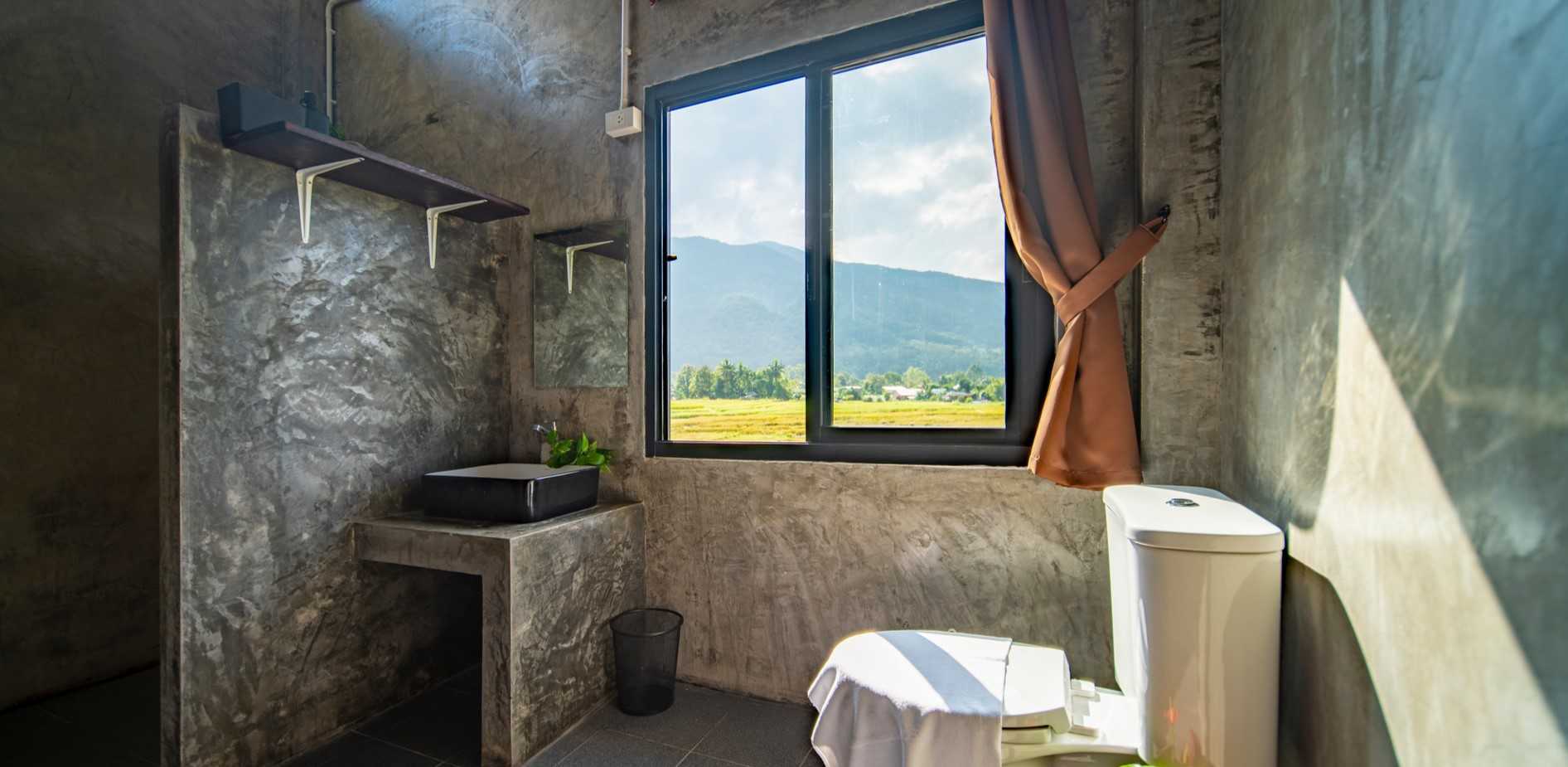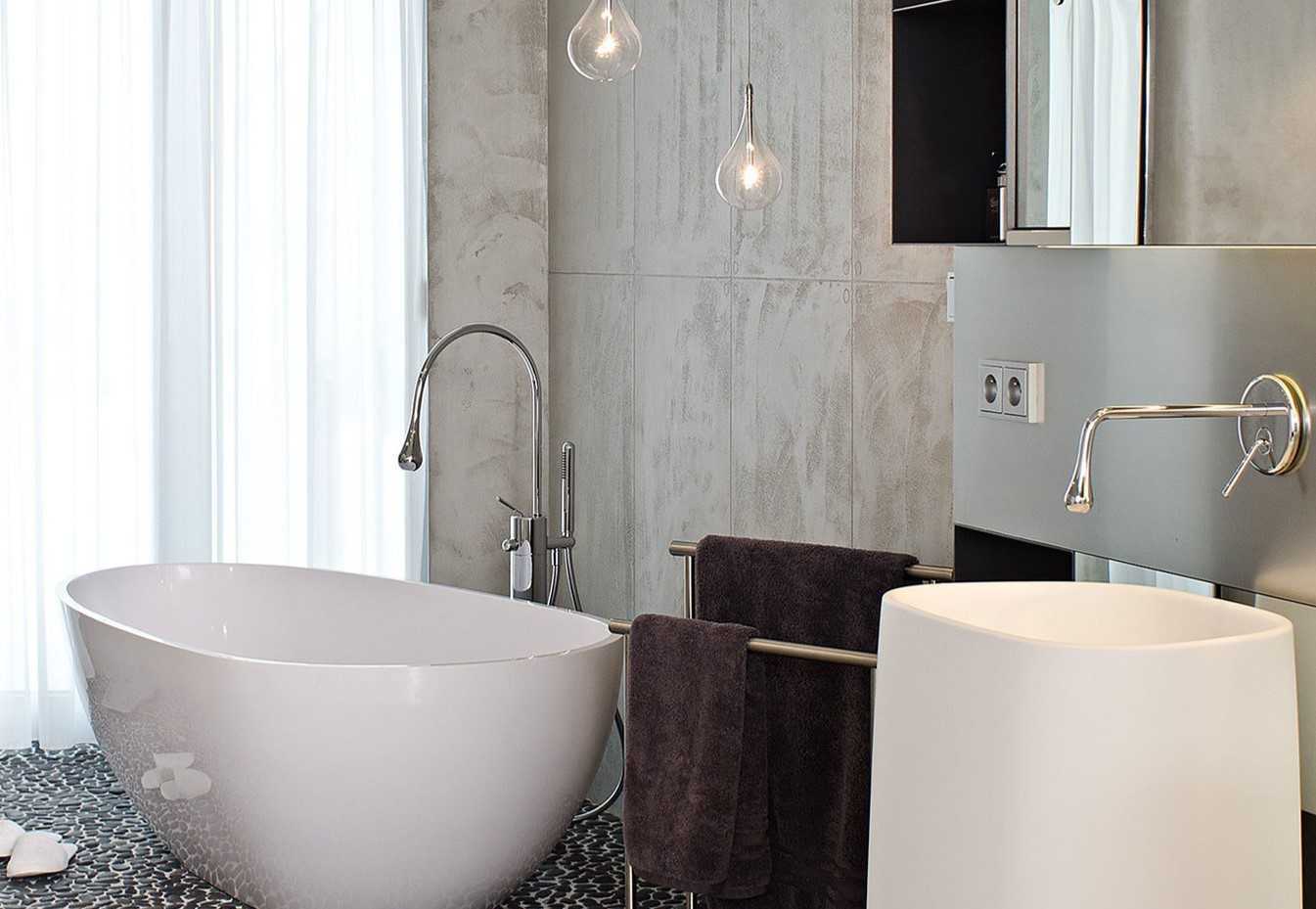 Бетонные стены помогут создать в ванной интерьер в стиле лофт