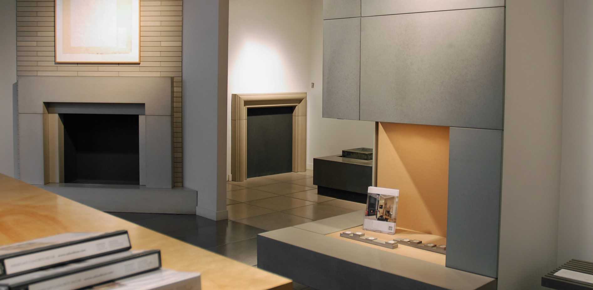 Отличным решением для просторного помещения будет отделка бетоном камина. Оригинальная фактура материала будет идеально гармонировать с огнем.