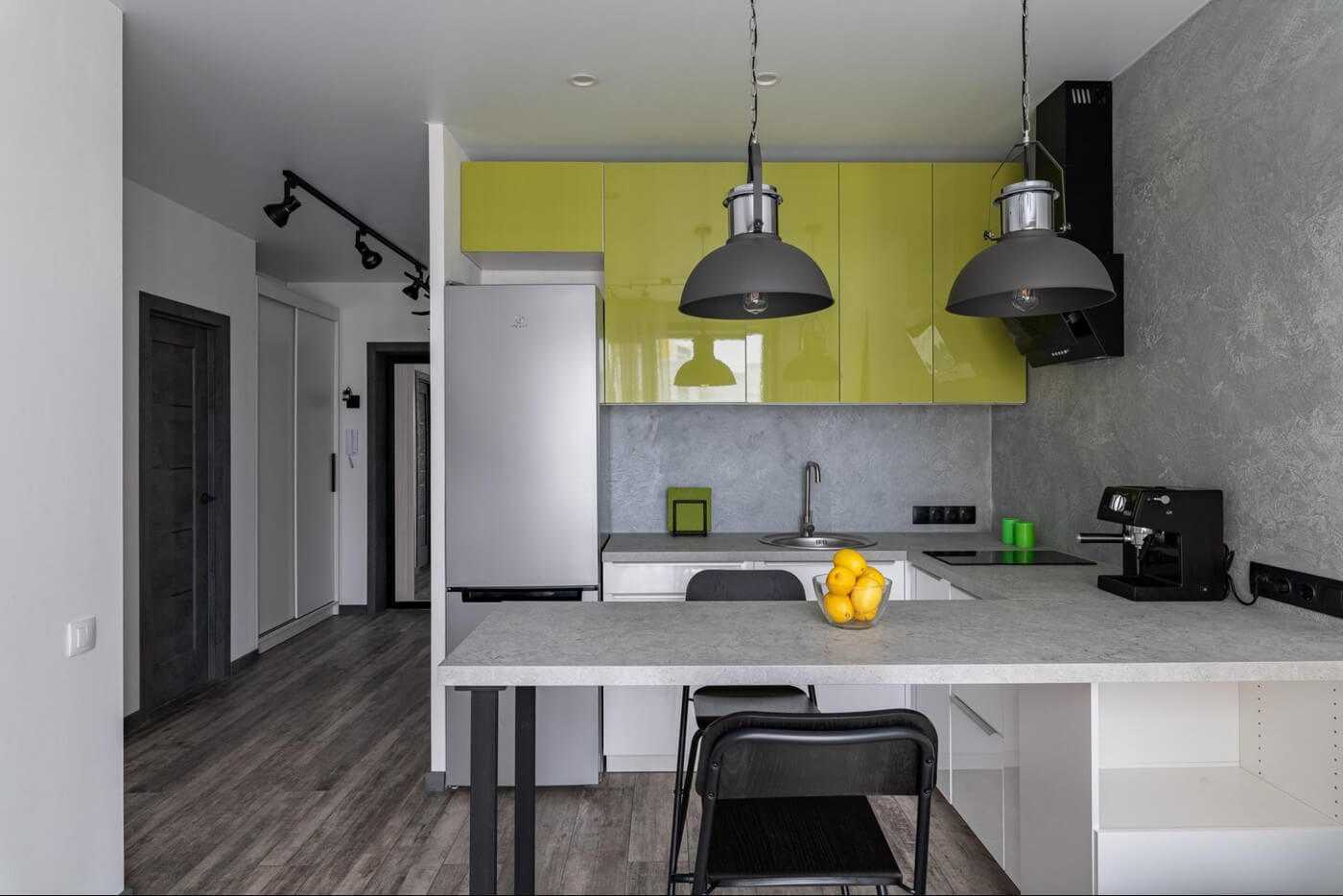 Стены из бетона подойдут для помещения больших размеров, например, гостиной, кухни-столовой или квартиры-студии. При этом не обязательно, что конструкция стены на самом деле состоит из бетона. Возможно использовать отделку, имитирующую этот материал.