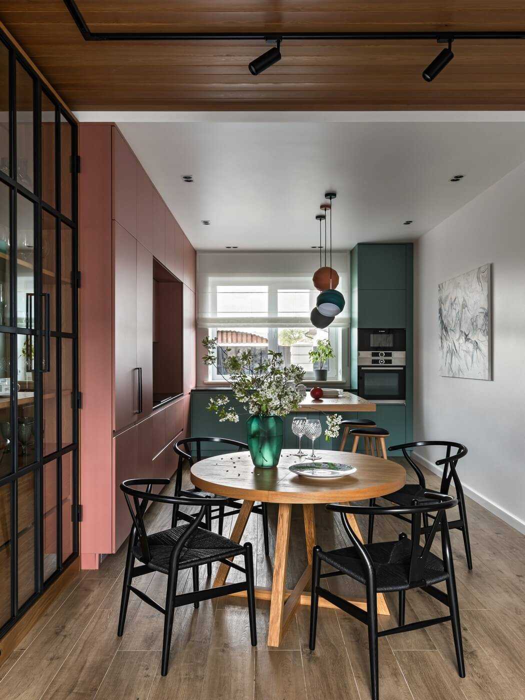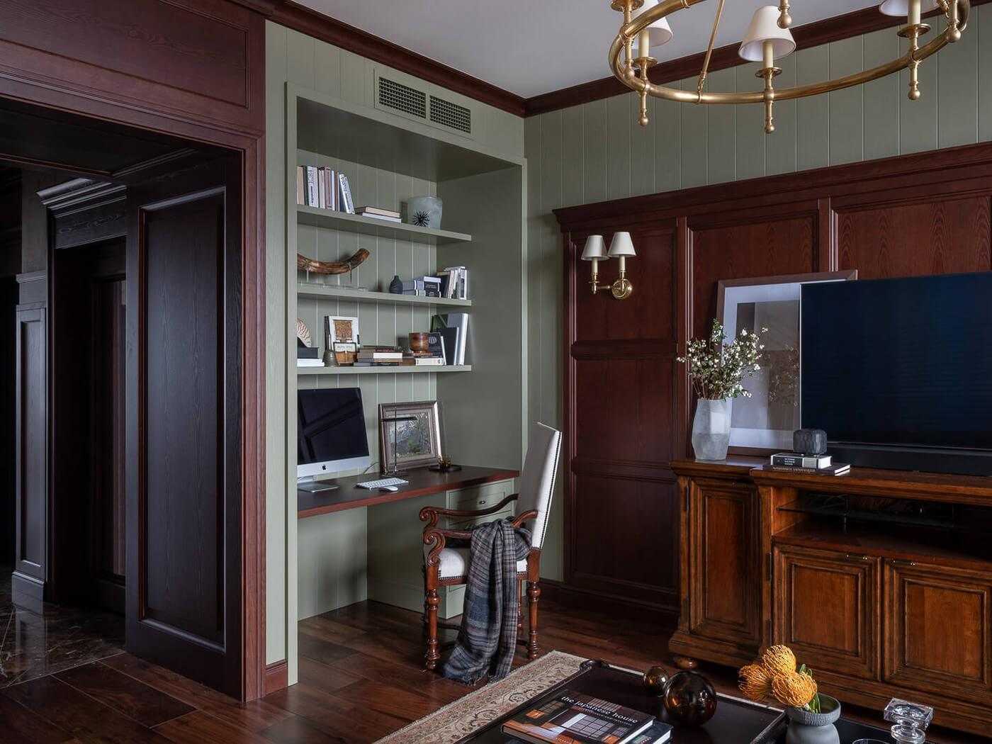 Фисташковый в сочетании с деревом цвета вишни — классика, не выходящая из моды. Квартира 240 м² с атмосферой загородного дома, архитектурное бюро «Берлога»