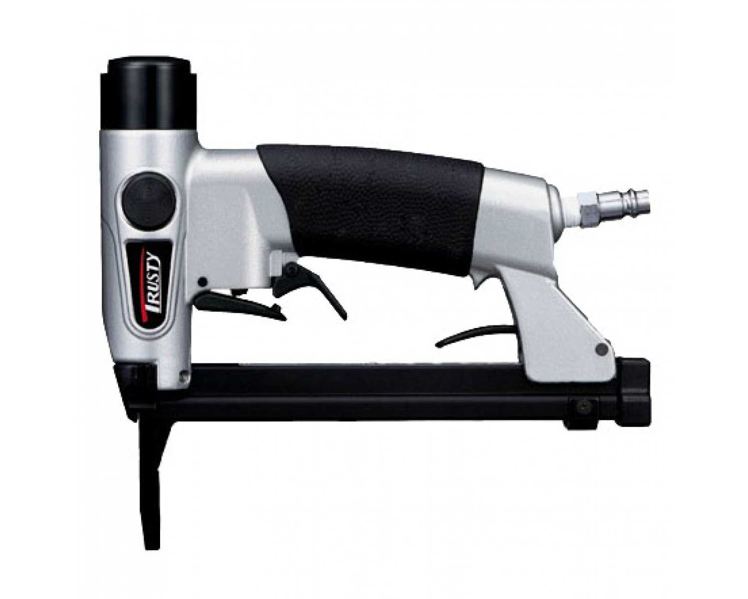 Также его называют нейлер, отличается быстротой установки. Выбирается при строительных работах, либо для работы с мебельными деталями. Выделяется способностью пробивать твердые материалы, наподобие кирпича, тогда выбирается усиленный тип.