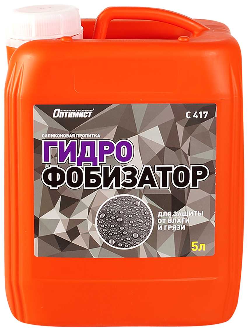 Для обработки разных поверхностей строительных конструкций применим гидрофобизатор Оптимист. Он не настолько богат дополнительными опциями, как Аквасил и Ceresit, однако с задачей защиты от воды и грязи справляется блестяще. Кроме того, линейка продукции включает специальные составы для индивидуальной обработки материалов, например, камня, древесины. Для защиты от плесени, с целью обеспечения пластификации, морозоустойчивости бетонов и т. д. выпускаются особые средства. Жидкость полностью готова к применению.