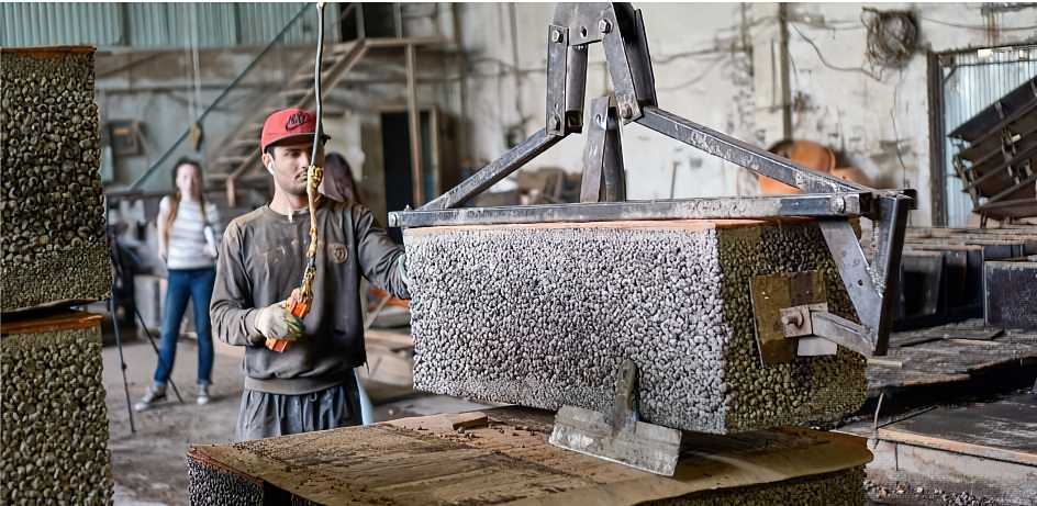 Процесс резки керамзитобетонного блокаИсточник pinterest.com