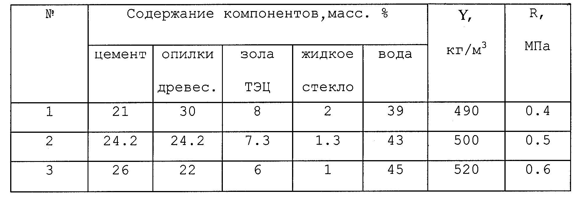 Хлорид или нитрат кальция, сульфат алюминия и жидкое стекло добавляют с целью повышения адгезии органического компонента в виде опилок и цементного раствора.