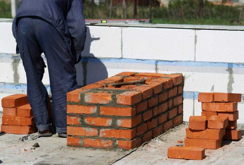 Кладка кирпича выполняется вертикально, удаление от дверного проема или стыковочного участка стен должно быть не менее сорока сантиметров.