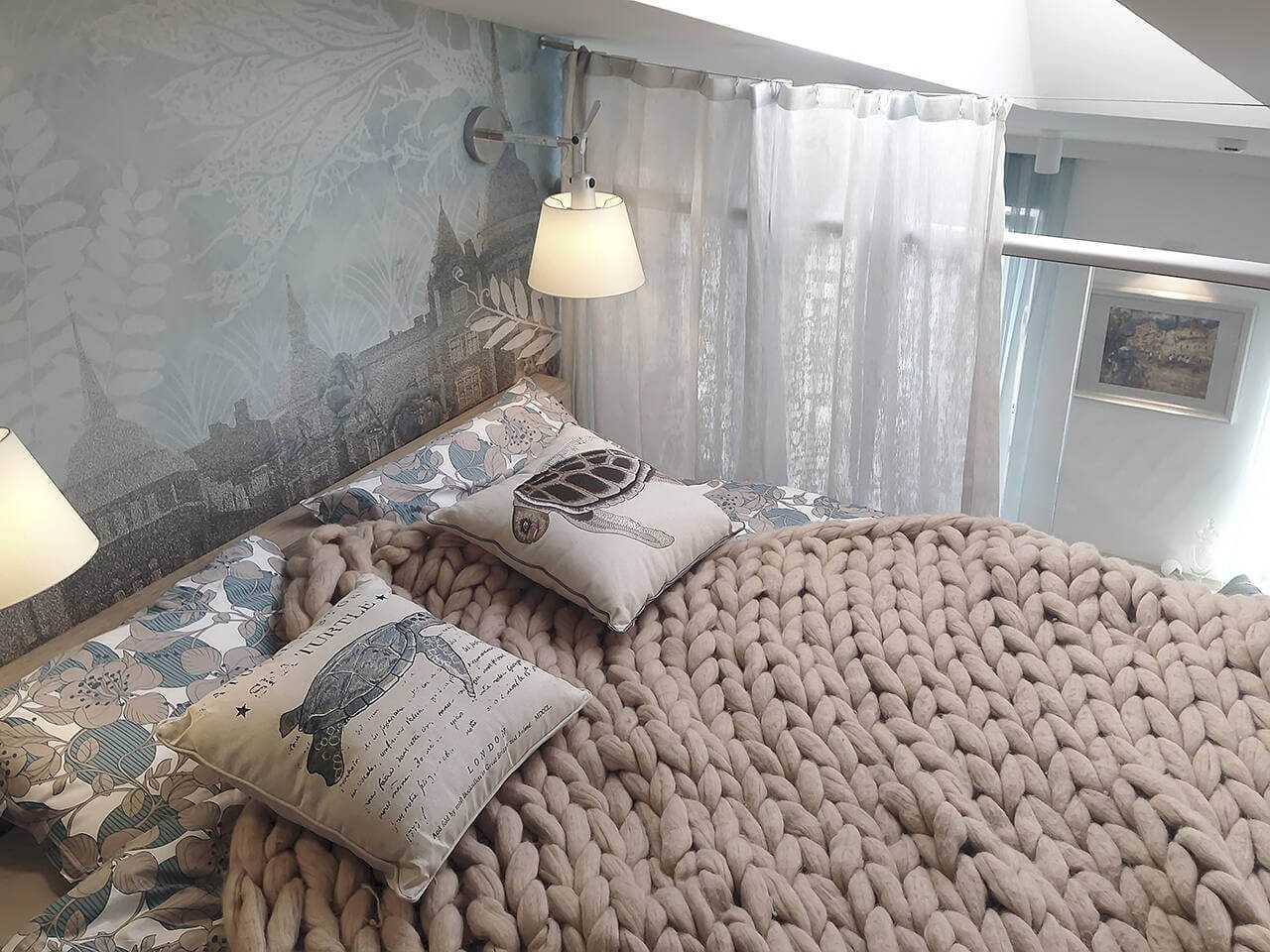 Обои приглушённых пастельных оттенков гармонично сочетаются с фактурным текстилем. Проект квартиры «Небесное вдохновение», дизайнер Татьяна Крыгина