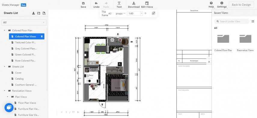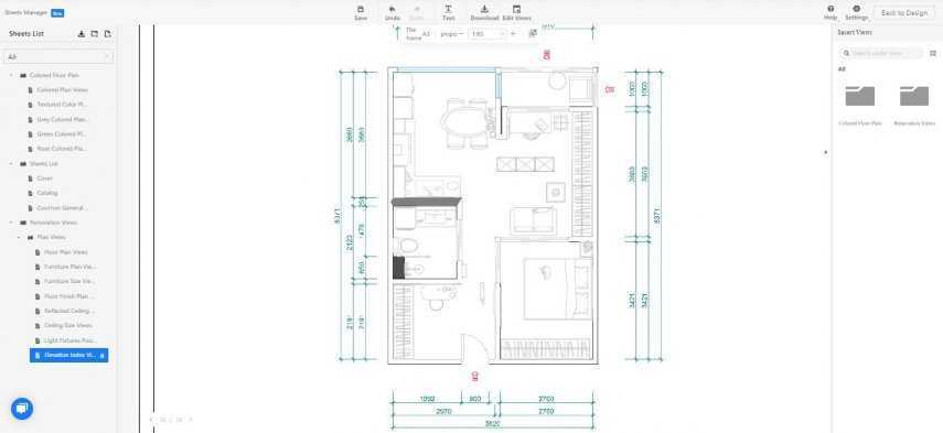 Самое важное отличие этого планировщика от других – оформление и подача проекта в виде рабочих чертежей, как и в классическом дизайн-проекте. Это полноценный комплект рабочих чертежей, состоящий из 12 планировочных листов (исходный обмерный план, план демонтажа стен, план теплых полов, план расстановки мебели и т.д.). Также в планировщике есть, 3D визуализация, печать альбома чертежей в виде файла PDF, расчет сметы и объемов работ для бригад, примерный расчет черновых материалов для ремонта, возможность одновременной работы с несколькими вариантами планировок
