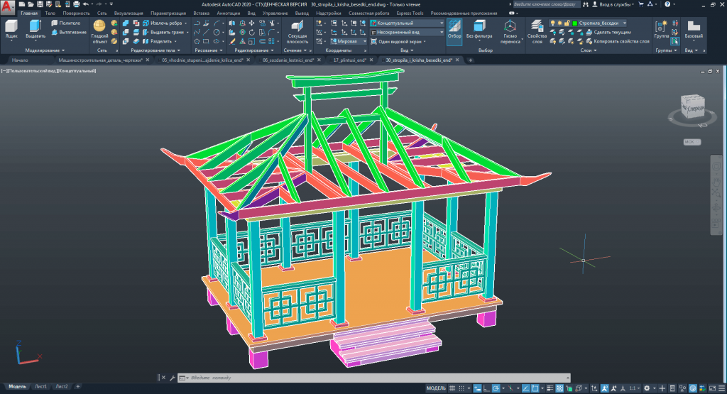 SketchUp с рядом ограничений по функционалу (сохраняет в собственном расширении *.skp, нет экспорта в другие форматы), и платная – PRO. ПО несколько отличается от аналогов тем, что все настройки геометрии объектов выполняются уже после их построения. Это, с одной стороны, удобно, так как нет необходимости выполнять двойную работу: сначала делать предустановки, а потом редактировать результат. С другой стороны, когда нужно исправить сразу несколько объектов, придётся корректировать каждый отдельно.