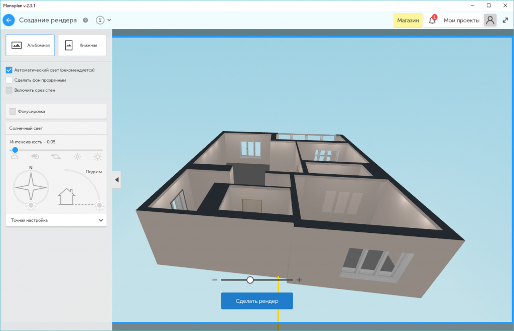В этой программе вы легко набросаете план помещения практически любой сложности, можете редактировать ландшафт, что есть не во всех программах, а также сделать HD-рендеры и использовать как 2D, так и 3D-режимы для работы. Среди минусов — каталог из 5000+ предметов мебели доступен лишь в платной версии. Правда, сам интерфейс очень прост и понятен даже новичку. На официальном сайте есть очень большое русскоязычное сообщество, так как программа сделана в Литве и в первую очередь ориентировалась на рынок СНГ.