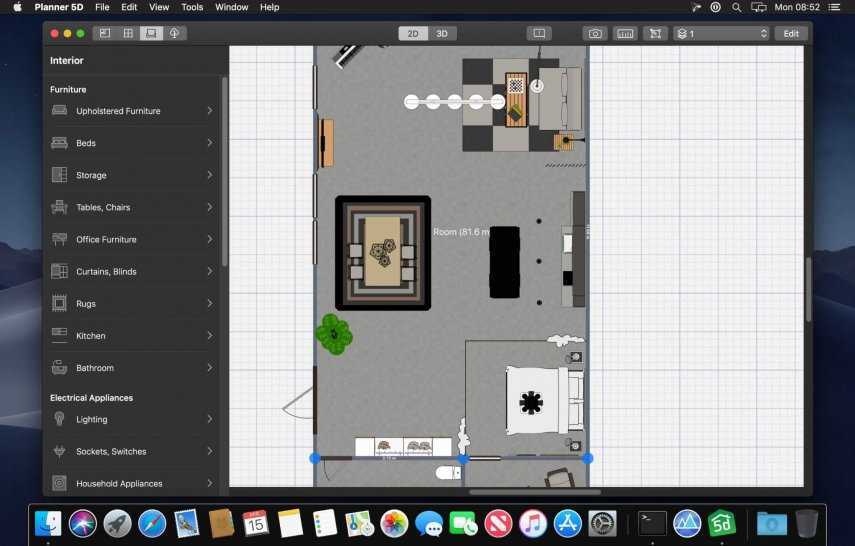Хотя сервис не позволяет скачивать изображение в формате JPG/PNG непосредственно на компьютер, но можно сделать снимок проекта, чтобы сохранить процесс изменений. Planner 5D имеет платные опции, поэтому некоторые элементы дизайна заблокированы. Тем не менее можете быть уверены: один элемент в каждой категории является бесплатным.