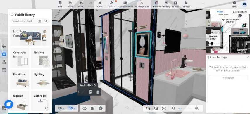 В Planner 5D можно менять текстуры и цвета, сравнивать разные материалы, адаптировать готовый проект под свои замеры и удобно переключаться между двухмерным и трехмерным режимом. Не ограничивай свою фантазию и смело экспериментируй!