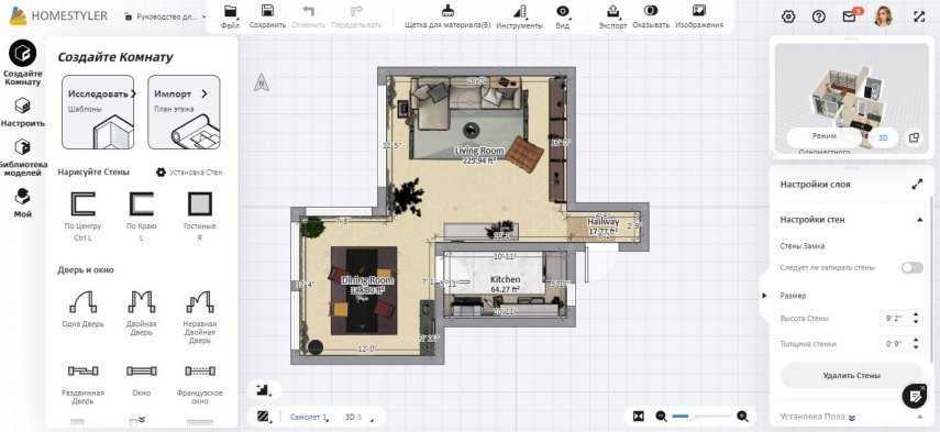 Создавайте собственную планировку, указав точные параметры или выбрав типовые, которые постоянно добавляются в базу программы.