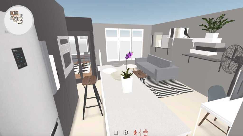 Простой интерфейс на русском языке, что немаловажно. По готовому проекту квартиры можно «пройтись», воспользовавшись функцией виртуальной экскурсии