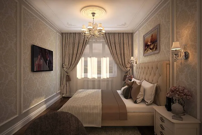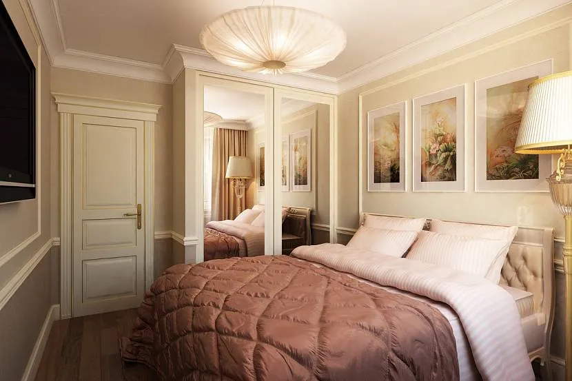Малогабаритная спальня в современной классике с красивым декорированиемИсточник behance.net