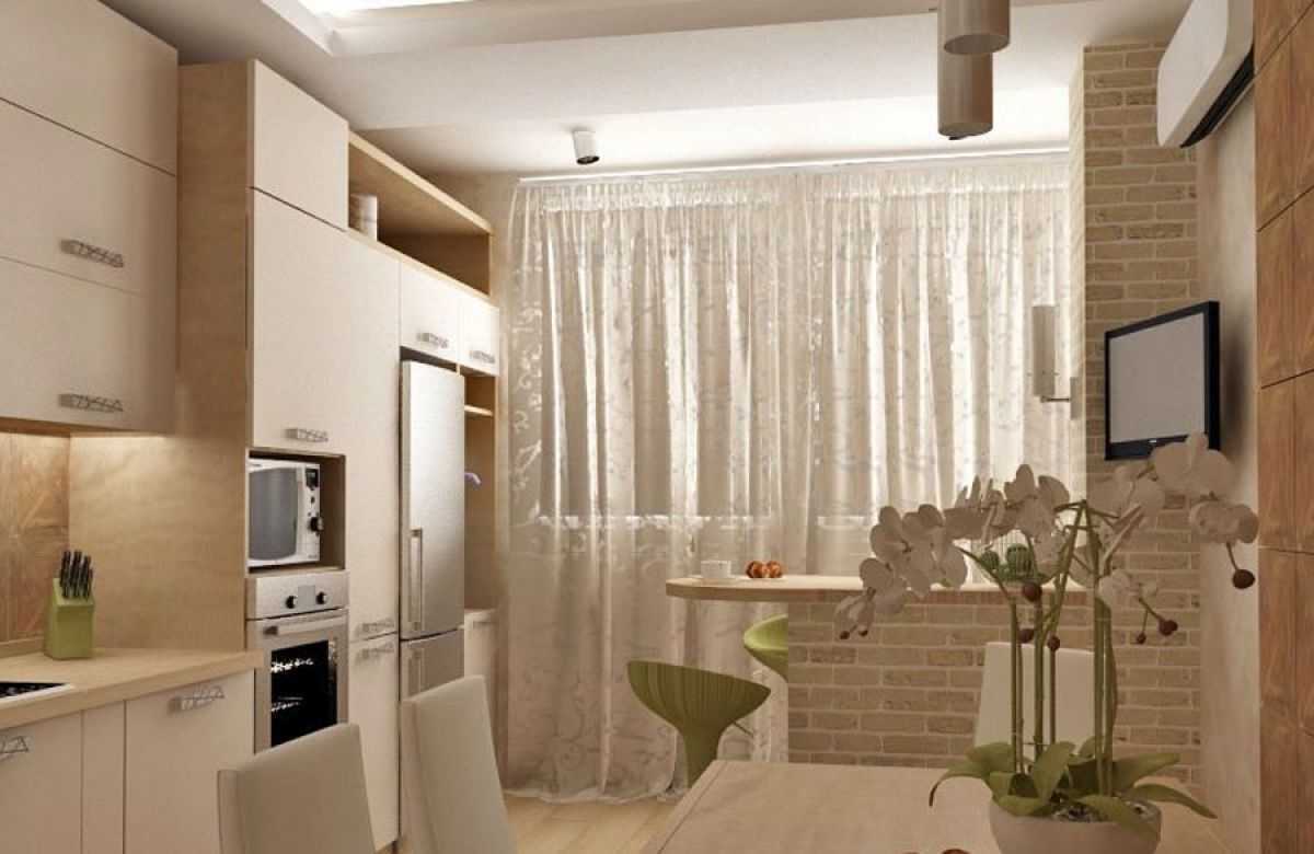 - Зонирование пространства кухни и балкона. Это помогает разделить рабочую зону кухни от зоны отдыха на балконе. При этом все удобство по подаче готовых блюд остается.