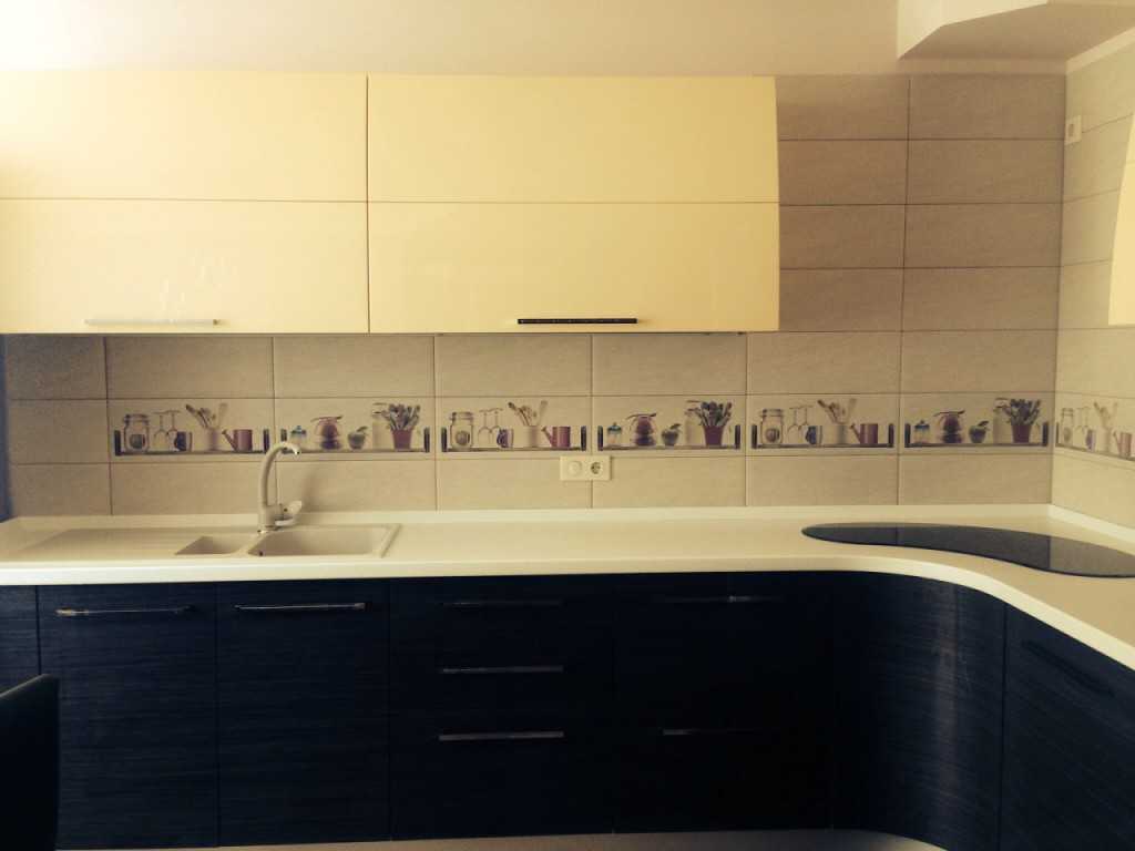 Оригинальным дополнением станет красочный фартук. Желтые тона наполнят помещение солнечным светом, зеленые сформируют летнее настроение, а голубая, бирюзовая или синяя гамма наделит обстановку морской свежестью.