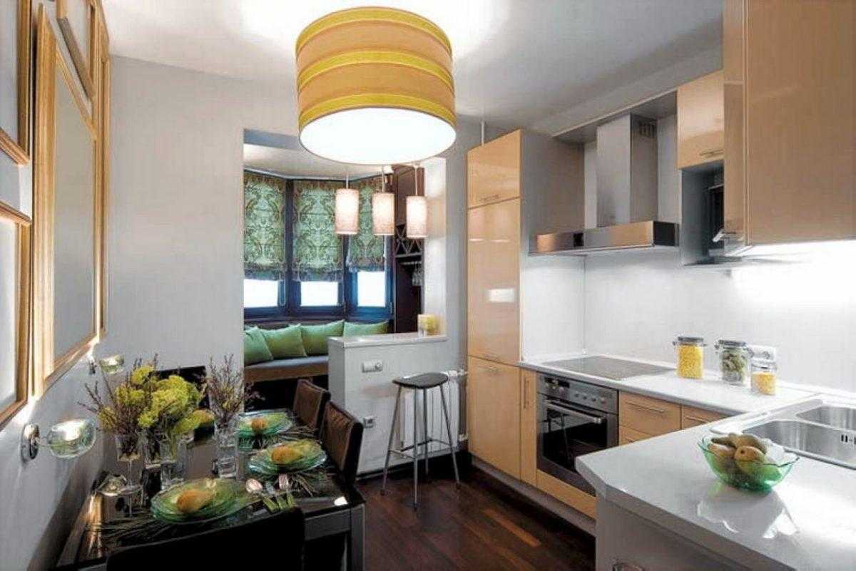 Огромные массивные гарнитуры из дорогого дерева, позолота, тяжелая каменная столешница, темный объемный текстиль – все это нелепо смотрится на маленькой кухне. А вот рационализированные и облегченные элементы будут очень уместны.