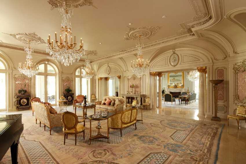Барокко характеризуется богатством, роскошью и помпезностью. Здесь просматривается влечение к излишествам. Данное направление было востребовано при оформлении дворцов, для интерьера которых основополагающими факторами служили пышность и величие. В настоящее время стиль барокко часто применяется при создании интерьера гостиной. Фото классического помещения наглядно отображают роскошный и богатый дизайн. Другим схожим по характеристикам направлением является рококо, для которого характерно использование элитных материалов, мебели с позолотой, дорогостоящего текстиля, элегантных композиций.