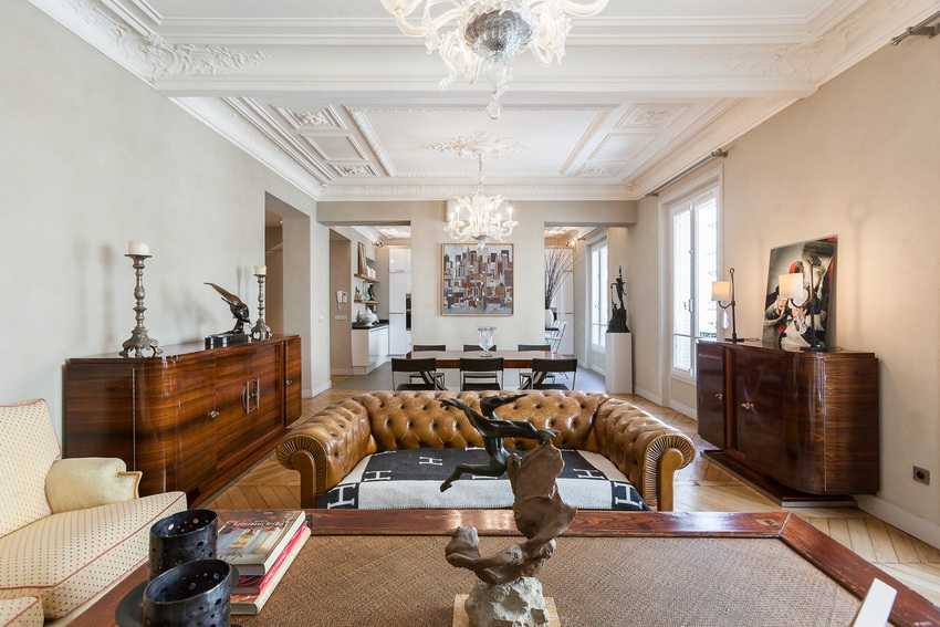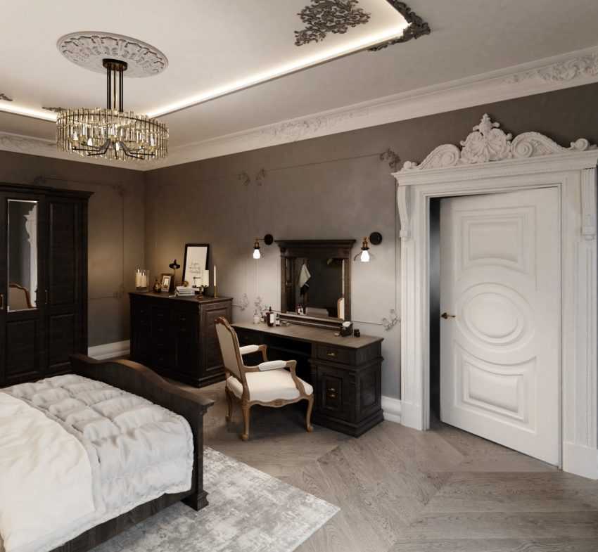 Дизайн привлекает внимание изыском, проверкой временем. Интерьер никогда не устареет и останется актуальным