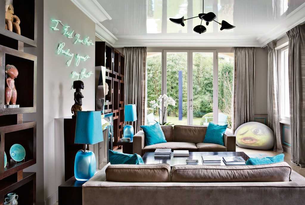 Декор гостиной бирюзового цвета