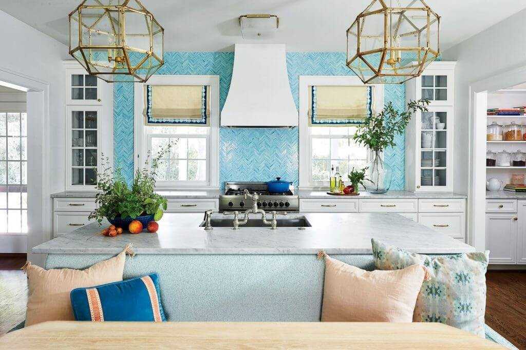 Фото бирюзового цвета в интерьере кухни.