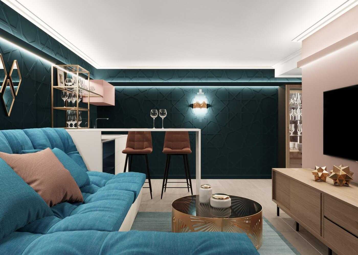 Дизайн гостиной в бирюзовом цвете: 55 лучших идей и реализаций в интерьере