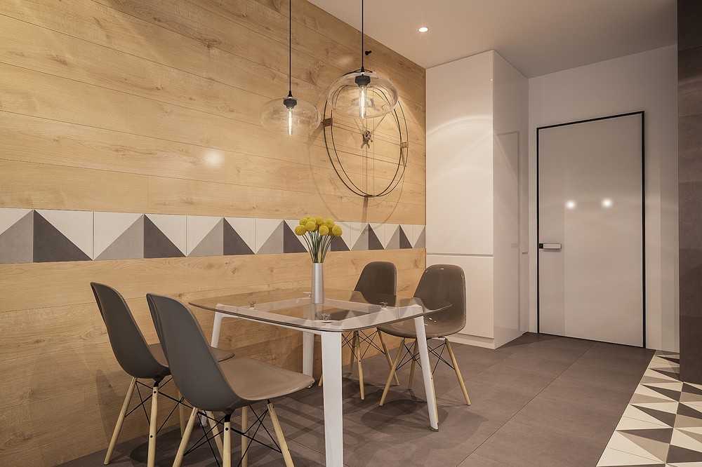 запахи на кухне не должны впитываться в стены, поэтому от деревянных изделий лучше отказаться;