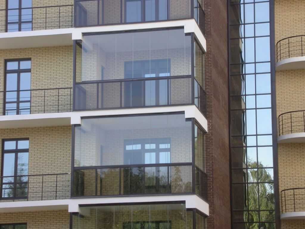 - Застекленные. Обычно это современные балконы с расширенной площадью, закрытые стеклами сверху донизу или только наполовину.