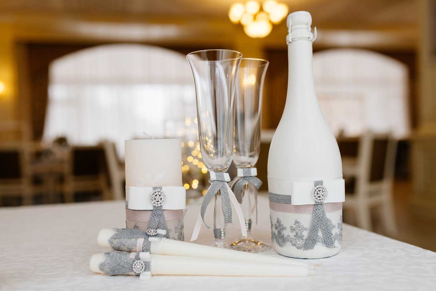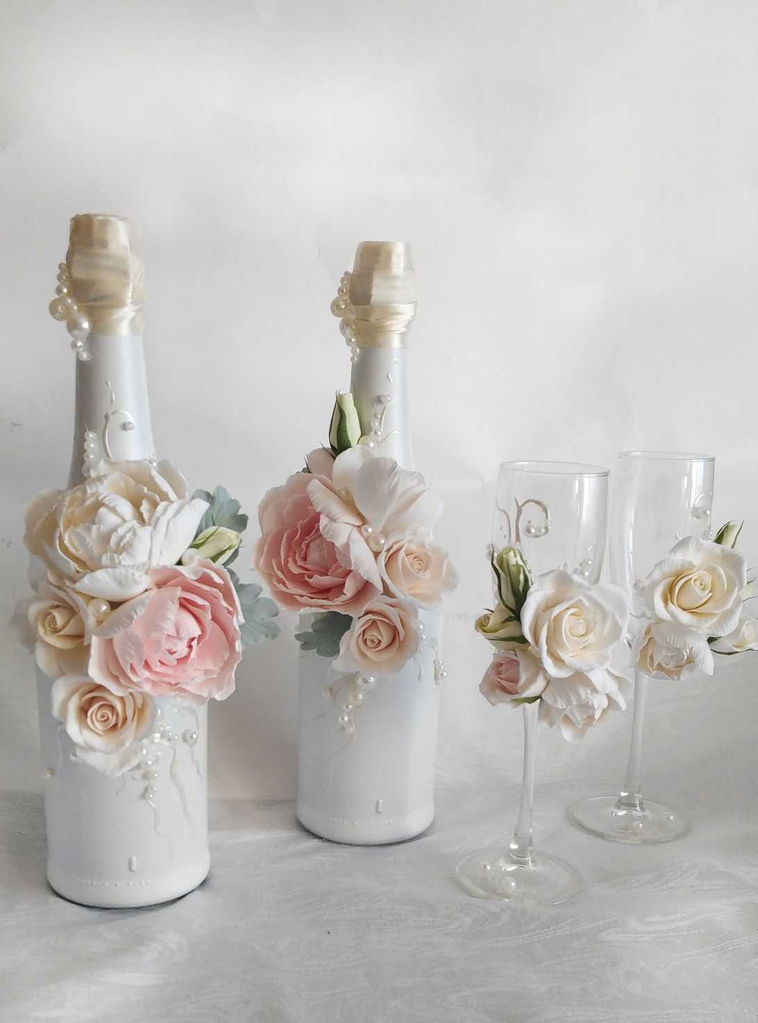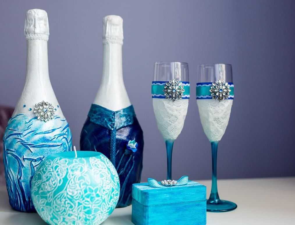 Бутылка хорошего шампанского давно стала неотъемлемой частью любой свадьбы. Этот напиток молодые пьют сразу после скрепления союза. Может поэтому родилась традиция украшать не только саму бутылку, но и бокалы?