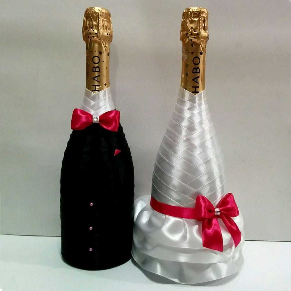 Всего существуют немало техник украшения свадебного шампанского. Среди них: