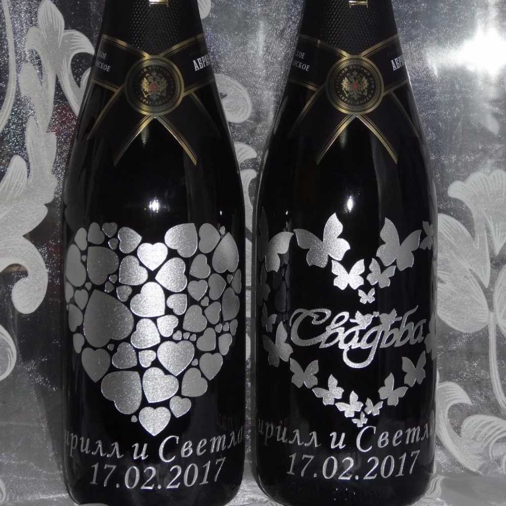 Используя гравировку в качестве украшения бутылок шампанского можно написать имена мужа и жены, дату свадьбы, либо любые другие памятные слова, которые хочется запомнить.