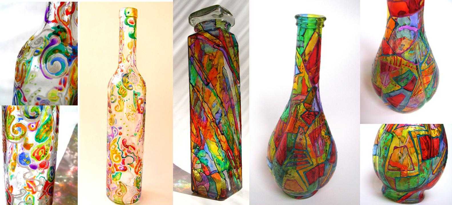 Декор бутылок витражной краской