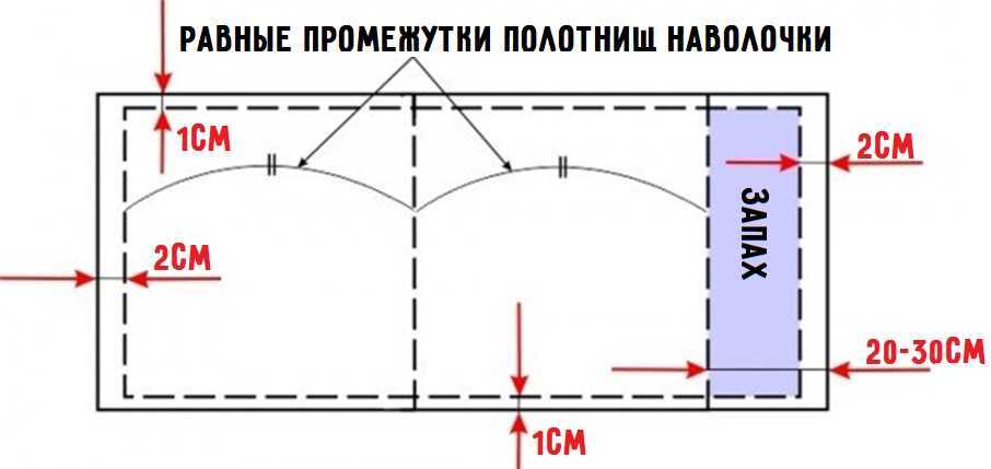 На ткань наносится разметка будущей наволочки, соответствующая габаритам подушки. Запах традиционно делается около 20-25 см.