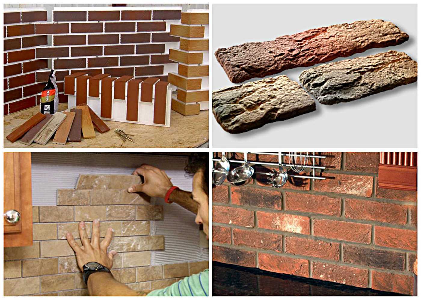 Четвертый способ – панели или плитки искусственного камня, имитирующие поверхность керамического кирпича. Такая имитация кирпичной кладки полностью воссоздает эффект настоящей кирпичной стены.