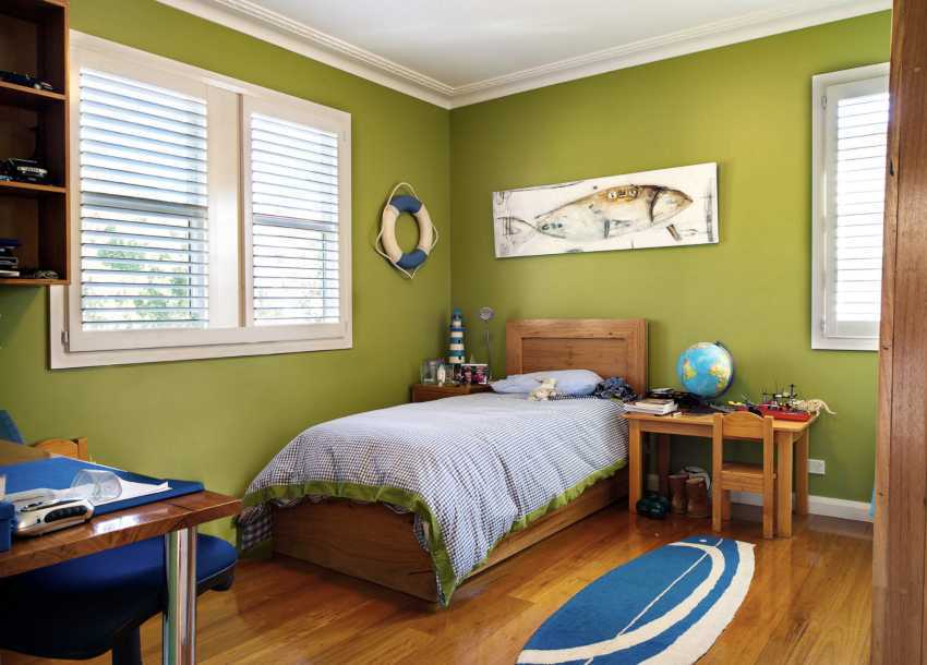 Помимо обоев, для отделки стен можно использовать краску или декоративную штукатурку, особенно если речь идет об оформлении интерьера комнаты для подростка. Цвет отделки можно менять, тем самым освежая помещение. В детской дополнительно рекомендуют организовать место для творчества и выполнить магнитную или грифельную стену.