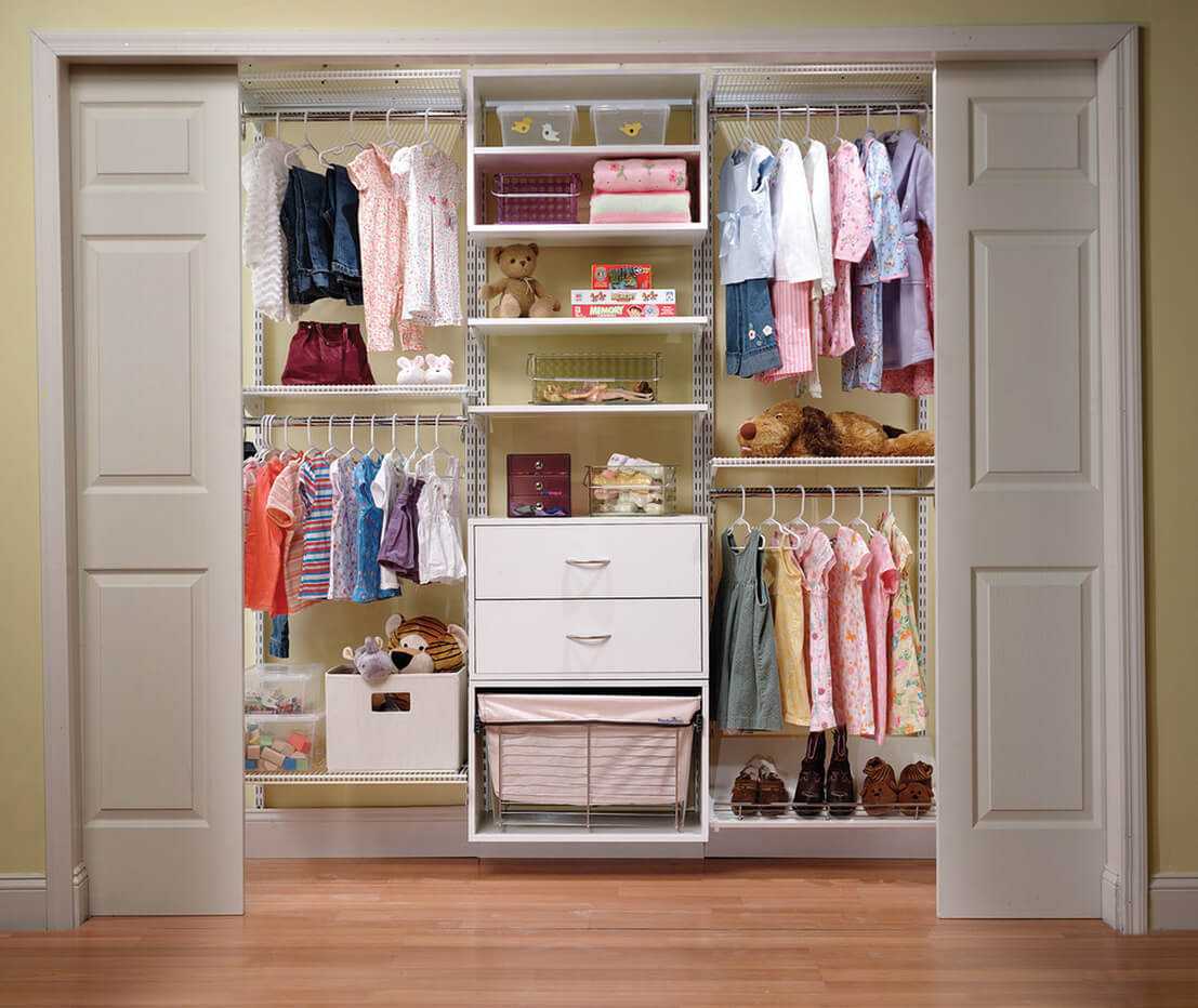 1. Для ребенка идеально подходит модульная система организации вещей, позволяющая по мере его роста менять конфигурацию отделений, регулировать высоту штанг и полок. Закажите шкаф-трансформер, конструкция которого предусматривает компоновку внутреннего пространства по своему усмотрению.